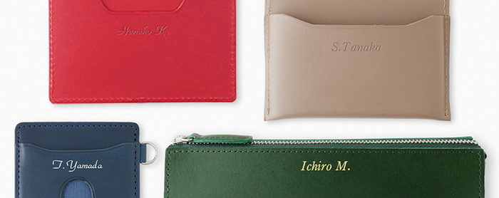 今回の限定入荷の革小物は、名入れの刻印も承ることができます。