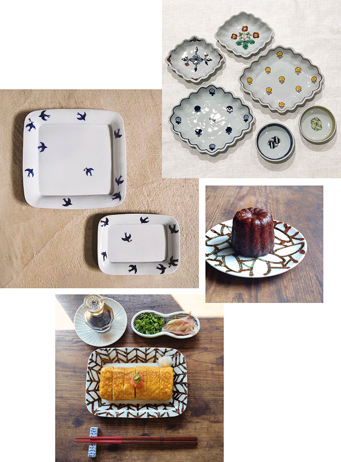 つばめや矢羽根の絵柄が印象的なお皿は、食卓の主役となるお料理に、